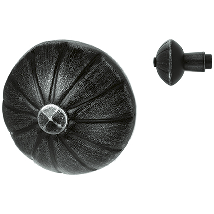 Schmiedeisen verzinkt und patiniert, Knopf mit Vierkantloch 8 oder 9 mm kombiniert mit Innengewinde M12 und Fixierschraube