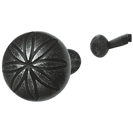 Schmiedeisen verzinkt und patiniert, Knopf mit Vierkantloch 8 mm kombiniert mit Innengewinde M12 und Fixierschraube