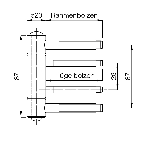 - Ausführung mit Stiftsicherung für auswärts öffnende Türen.