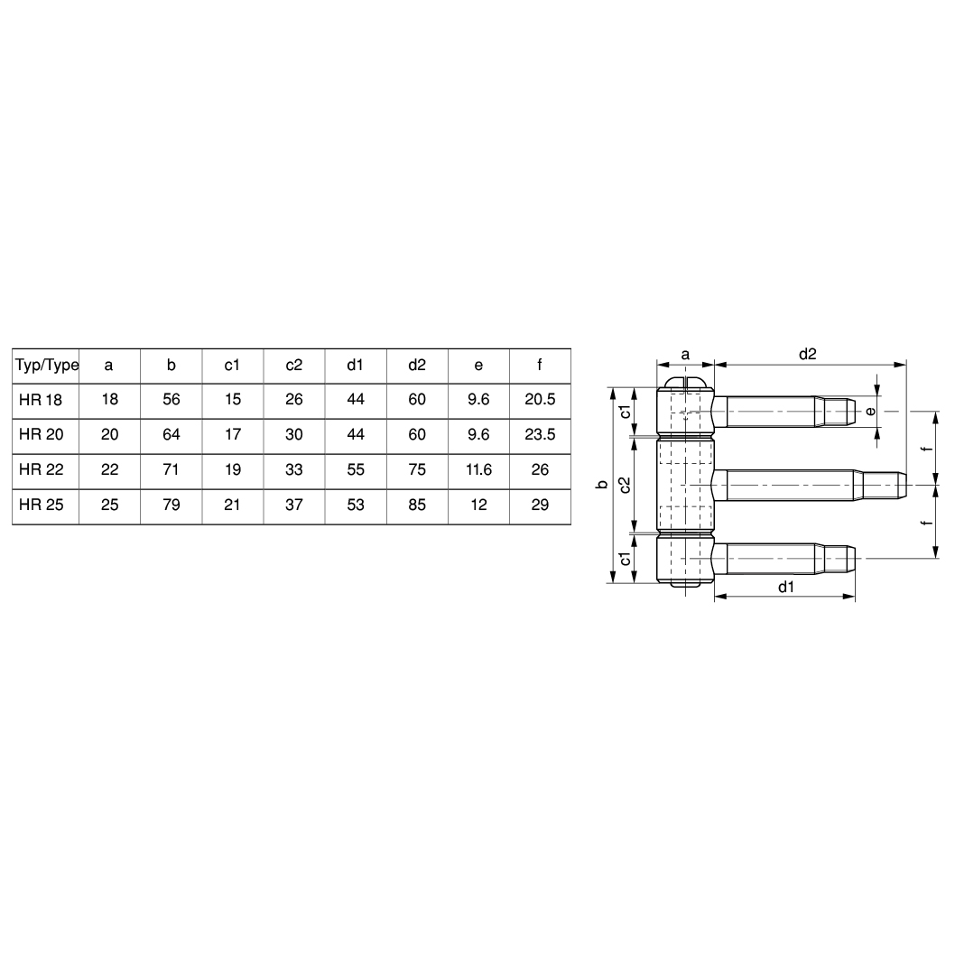 Stahl verzinkt, 3-teilig, mit Hostaform-Gleitlager und Stufengewindebolzen,
