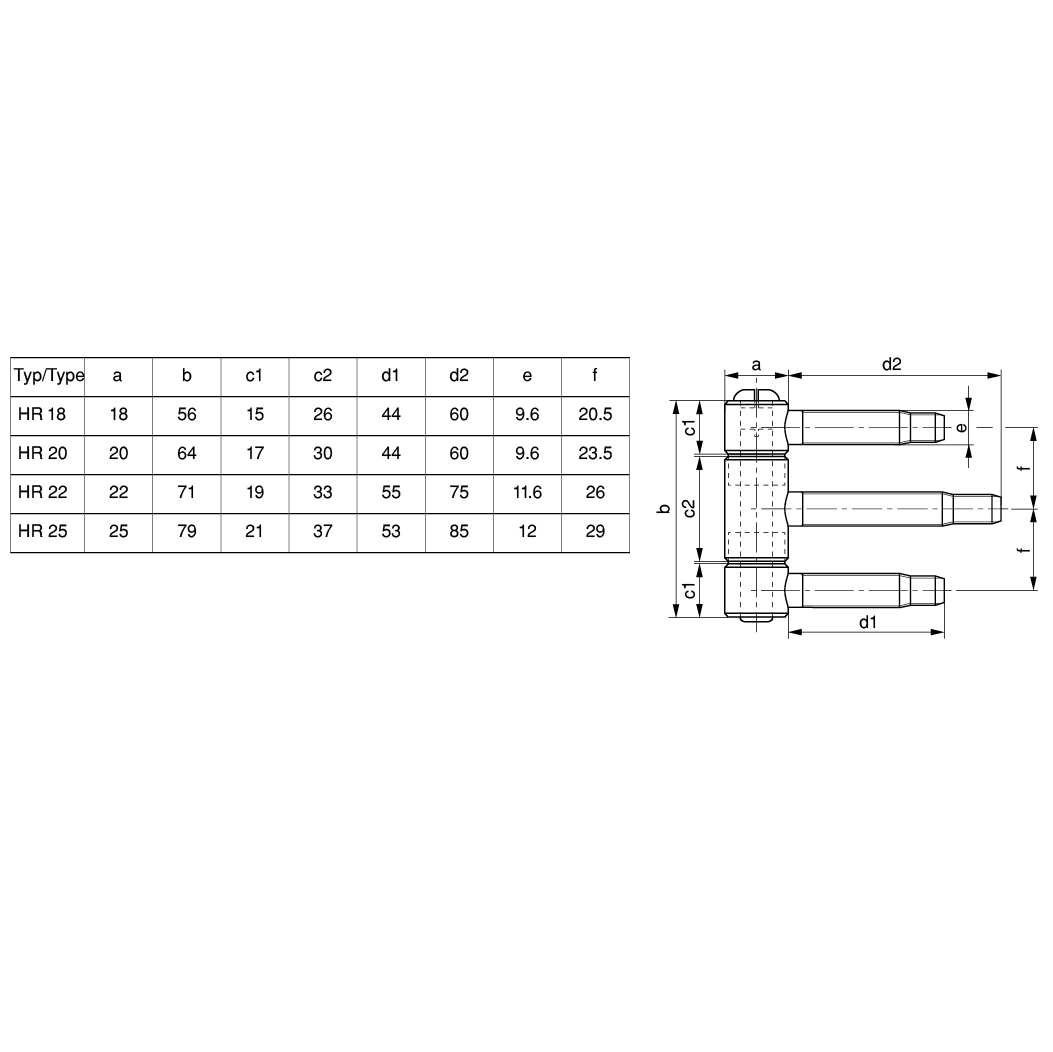 Edelstahl matt, 3-teilig, mit Hostaform-Gleitlager und Stufengewindebolzen,