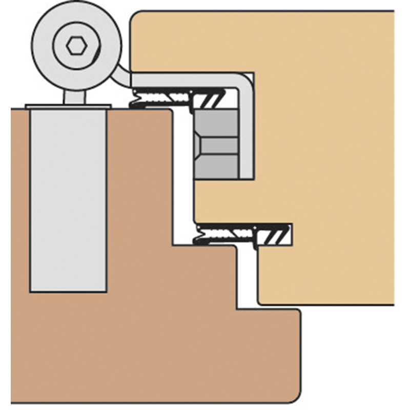 - Anwendung: nach dem Ausfräsen der Ausnehmung für die Bandtasche wird die Bohrlehre in die Ausnehmung eingesetzt. Die Löcher für die Befestigung und Einstellung der Bandtasche können jetzt mit dem Bohrer Ø 5,9 mm passgenau gebohrt werden.