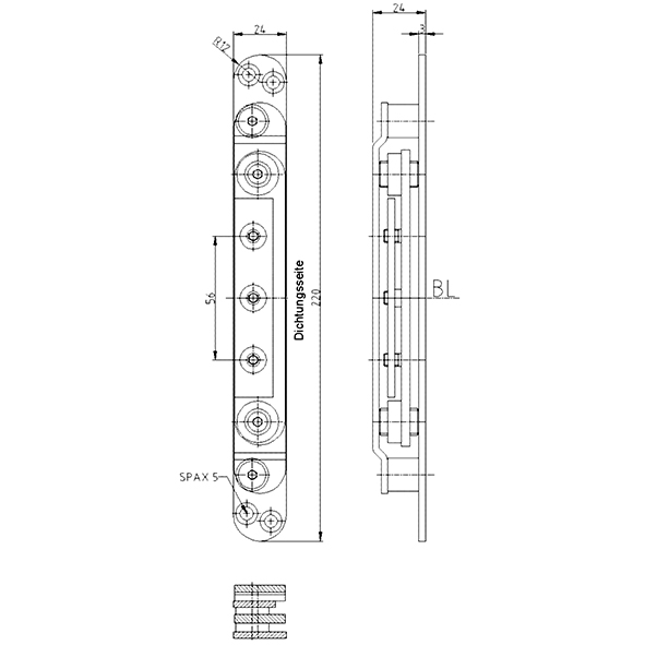 Unterkonstruktion Stahl, Frontplatte Edelstahl gebürstet, komplett montiert, integrierte Ausreisssicherung, Verstellbereich 3 mm, massive Frontplatte, Tragkraft bei 2 Band ca. 150 Kilo