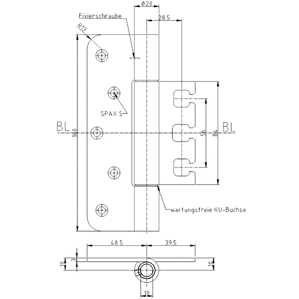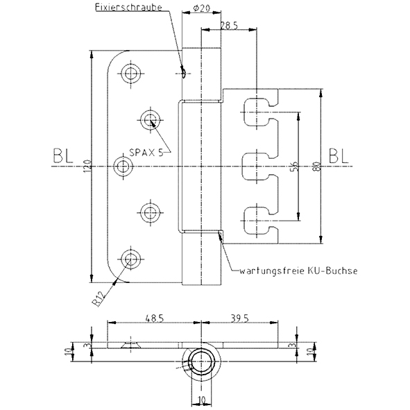 Edelstahl gebürstet, für stumpf einschlagende Türen, wartungsfrei, mit Stiftsicherung, eingebaut demontierbar, Lappendicke 3 mm, Anschlagluft 14 mm, ab Höhe 100 mm: zur Verwendung an Türen in Flucht- und Rettungswegen mit Anforderungen an den Rauch- und Brandschutz, Tragkraft, Lappenhöhe 95 mm, bei 2 Band ca. 80 Kilo, Tragkraft, Lappenhöhe 120 mm, bei 2 Band ca. 100 Kilo, Tragkraft, Lappenhöhe 160 mm, bei 2 Band ca. 120 Kilo