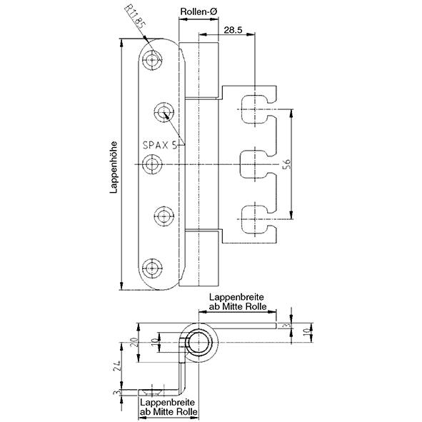 - Lappenbreiten ab Mitte Rolle