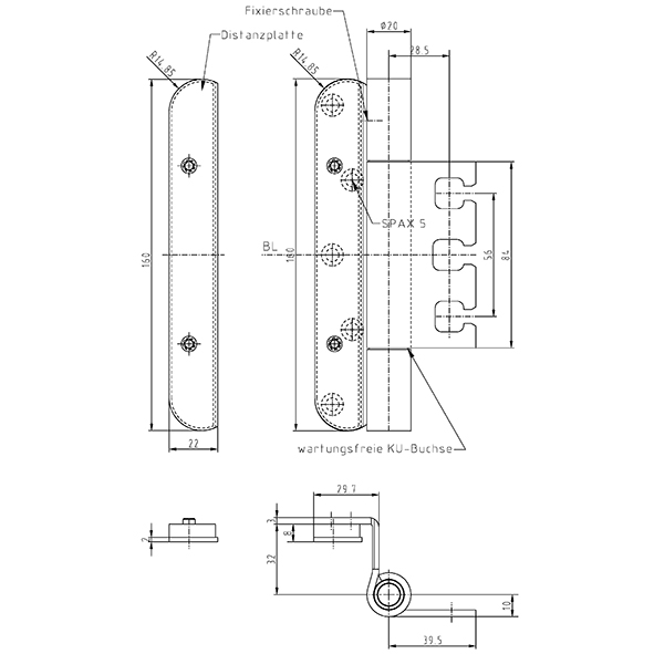 Edelstahl gebürstet, für überfälzte Türen mit durchlaufender Dichtung, wartungsfrei, mit Stiftsicherung, eingebaut demontierbar, mit Distanzplatte, Lappendicke 3 mm, für Überschlagsdichtung 13 mm, zur Verwendung an Türen in Flucht- und Rettungswegen mit Anforderungen an den Rauch- und Brandschutz, Tragkraft bei 2 Band ca. 160 Kilo