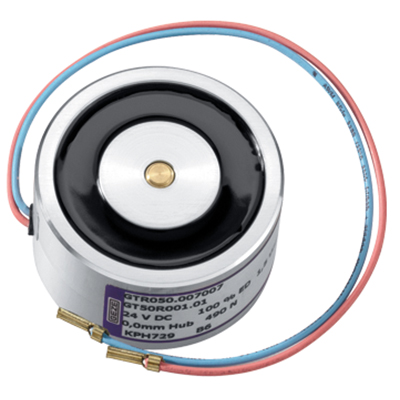 Magnetspule verzinkt, rückseitige Verschraubung, zum Feststellen von Brand- und Rauchschutztüren in Kombination mit Türschliessern, Betriebsspannung 24 V DC, Haltekraft 490 N, ohne Zubehör