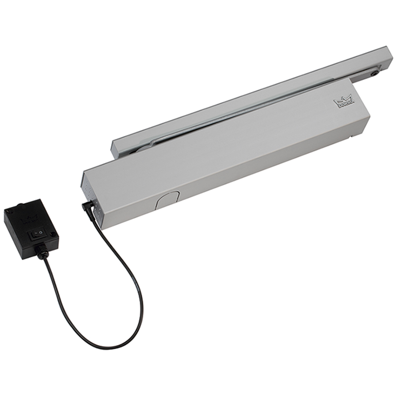 mit Freilauffunktion, mit der ersten Betätigung der Tür, ab Öffnungswinkel ca. 0°, wird die Schliessfeder gespannt und bei geöffneter Tür elektrohydraulisch festgestellt, dadurch lässt sich die Tür ohne jeden Wiederstand öffnen und schliessen, in Kombination mit Rauchschaltzentrale für Brand- und Rauchschutztüren, Betriebsspannung 24 V DC