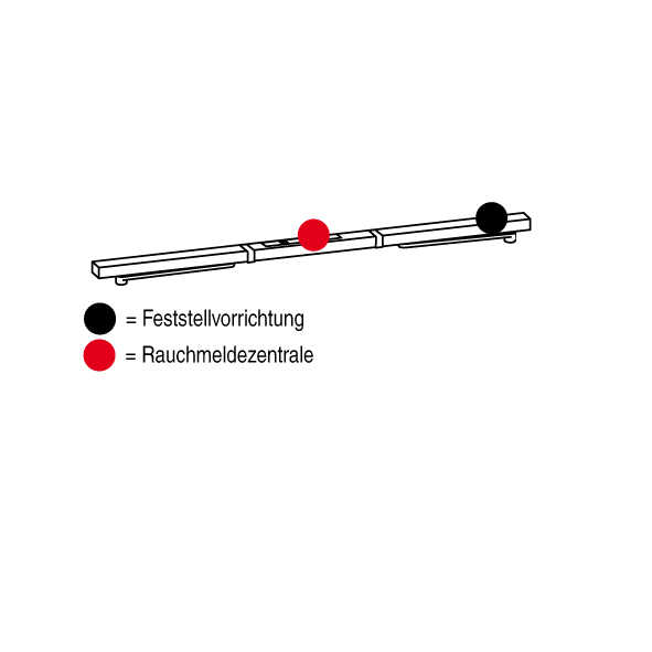 mit integrierter mechanischer Schliessfolgeregelung für 2-flüglige Türen und elektromechanischer Feststellung im Standflügel, Feststellpunkt zwischen 80° bis 130° einstellbar, integriertem Netzteil und Rauchmelder mit Anschlussmöglichkeit für weitere Rauchmelder und externe Handauslösung und potentialfreiem Wechsler, der Gangflügel wird über die Schliessfolgeregelung beliebig in einem Winkel bis max. 150° festgestellt, durch die werkzeuglos einstellbare Ausrückkraft kann die Feststellung auch von Hand problemlos ausgelöst werden, beim Schliessen der Tür bleibt der Gangflügel in Warteposition bis der Standflügel geschlossen ist und über die Schliessfolgeregelung den Gangflügel freigibt, Montage auf Bandseite, Eingangsspannung 230 V AC, Betriebsspannung 24 V DC