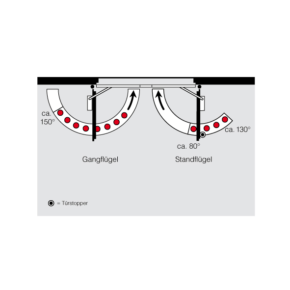 - Für 1 Gleitschienen-Set werden 2 Türschliesser benötigt.
