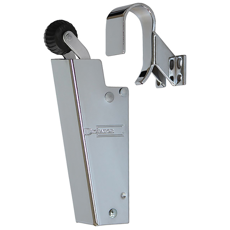 Stahl verchromt, bremst die zufallende Türe progressiv sanft ab, und schliesst die Türe lautlos, und hält die Türe sicher geschlossen, mit unsichtbarer Befestigung, mit Kloben 1009, Montageanleitung und Schrauben