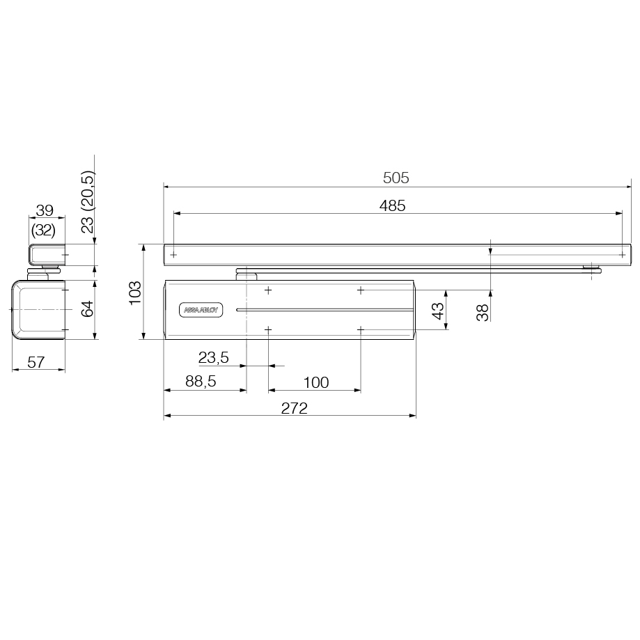 aufgesetzter Türschliesser mit stufenlos einstellbarer Schliesskraft, für 1-flügelige Türen bis Grösse EN 4, erfüllt Anforderungen an barrierefreies Öffnen, für Band- und Bandgegenseite in Normal- und Kopfmontage, in Verbindung mit Montageplatte geeignet für Feuer- und Rauchschutztüren, mit Gleitschiene DCG195, mit Montageplatte DCA120