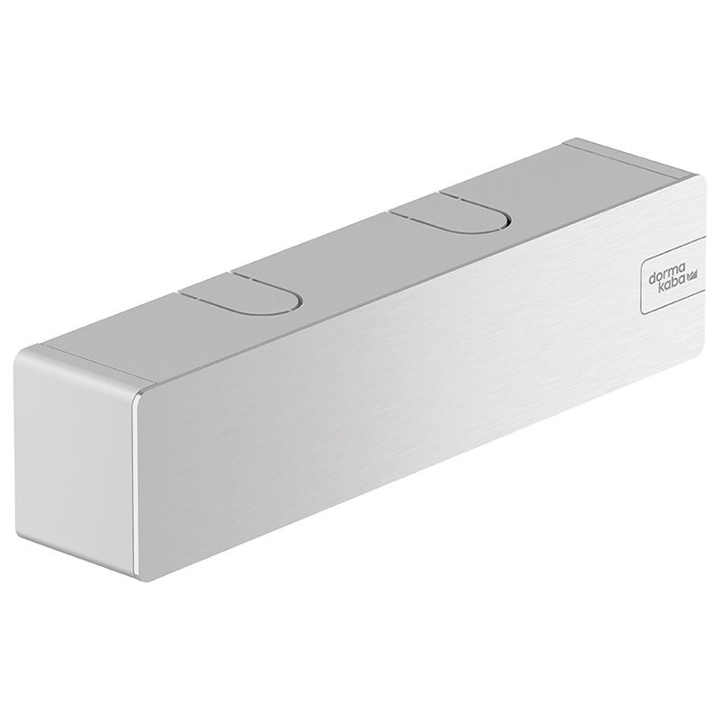 aufgesetzter Gleitschienen-Türschliesser, mit stufenlos einstellbarer Schliesskraft, Schliessgeschwindigkeit über zwei Ventile unabhängig voneinander stufenlos einstellbar, für Türblattmontage auf Bandseite, sowie für Kopfmontage auf Bandgegenseite