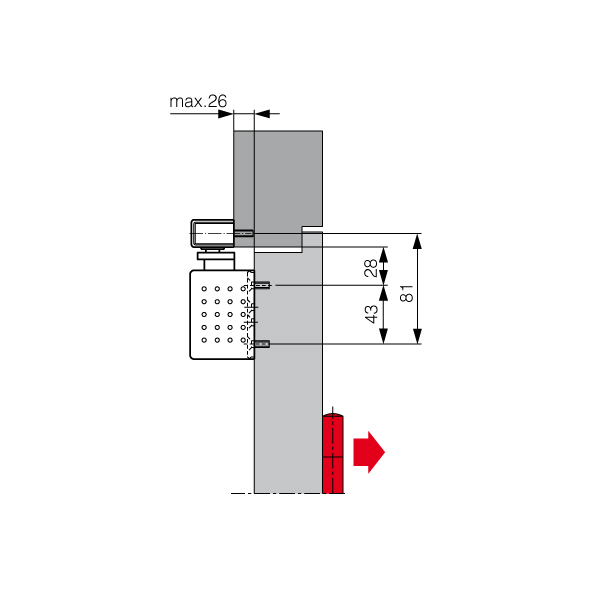 aufgesetzter Gleitschienen-Türschliesser, mit stufenlos einstellbarer Schliesskraft, Schliessgeschwindigkeit über zwei Ventile unabhängig voneinander stufenlos einstellbar, für Türblattmontage auf Bandgegenseite, sowie für Kopfmontage auf Bandseite