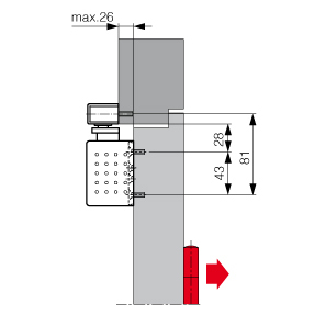 mit integrierter mechanischer Schliessfolgeregelung für 2-flüglige Türen, beim Schliessen der Tür bleibt der Gangflügel in Warteposition bis der Standflügel geschlossen ist und über die Schliessfolgeregelung den Gangflügel freigibt, Montage auf Bandgegenseite