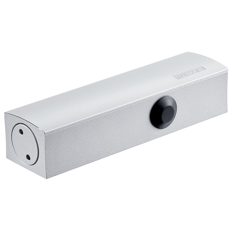 aufgesetzter Zahntrieb-Türschliesser mit variabler Schliesskraft, geeignet für Feuer- und Rauchschutztüren, Schliessgeschwindigkeit von vorne einstellbar, Endschlag über Gestänge einstellbar, für Türblattmontage auf Bandseite, sowie für Kopfmontage auf Bandgegenseite