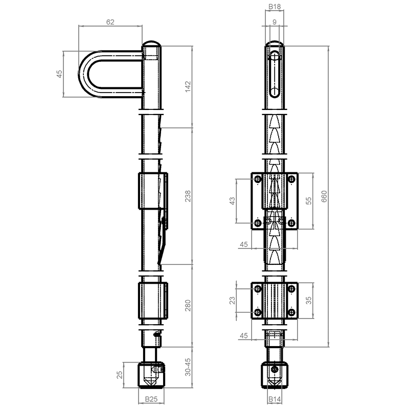 verzinkt, mit Zahnung und Arretierfeder, mit gefederter Spitze,