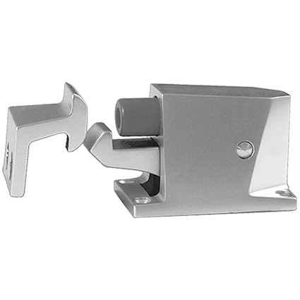 - Die Türe wird bis zum Anschlag geöffnet und durch den Fanghaken festgehalten, automatische Auslösung durch Drücken des Türflügels gegen den Nylon-Anschlag.