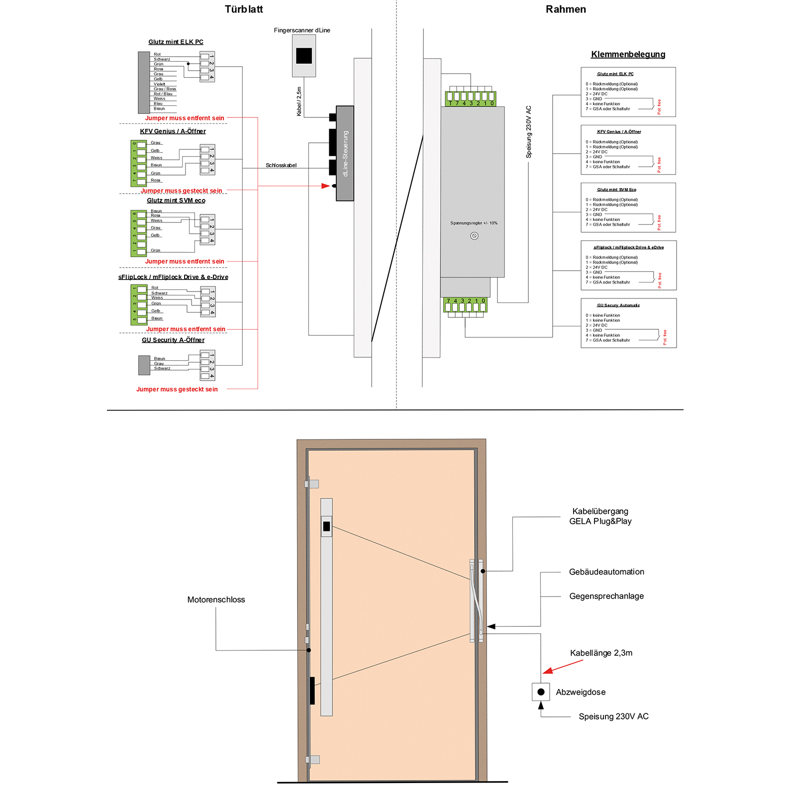 - 1 x Montage- und Anschlussanleitung, zu Zutritts-Set "GELA plug&play dLine"