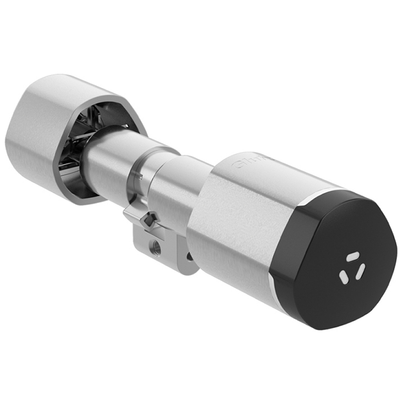 Batteriebetriebener elektronischer Zylinder für Innen- und Aussentüren, Öffnen und Schliessen von aussen erfolgt durch das berührungslose Lesen des RFID-Mediums oder durch die Smartphone-App und anschliessendem Drehen des Knaufes, über den mechanischen Drehknopf auf der Innenseite ist eine Öffnung/Schliessung jederzeit gewährleistet