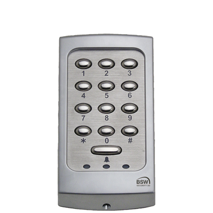 Edelstahl matt, sabotagegeschützt, für Innen- und Aussenanwendung, die Programmierung erfolgt über die Tastatur, Ein- oder Multicode-Betrieb, Speicherkapazität für max. 50 verschiedene 4 - 8 stellige Benutzercodes, nach Eingabe 20 falscher Ziffern wird die Tastatur für 60 Sekunden über die Falsch-Code-Erkennung blockiert, Türglockenfunktion möglich, es kann ein Bedrohungs-Code programmiert werden, welcher nach der Eingabe eine Alarmmeldung absetzt (nicht kombinierbar mit Türglockenfunktion), Türentriegelungszeit einstellbar zwischen 1 - 99 Sekunden, in Verbindung mit Netz- / Ladeteil zur Ansteuerung von elektronischen Verriegelungselementen wie z.B. Elektro-Türöffnern, Haftmagnete, Elektro- und Motor-