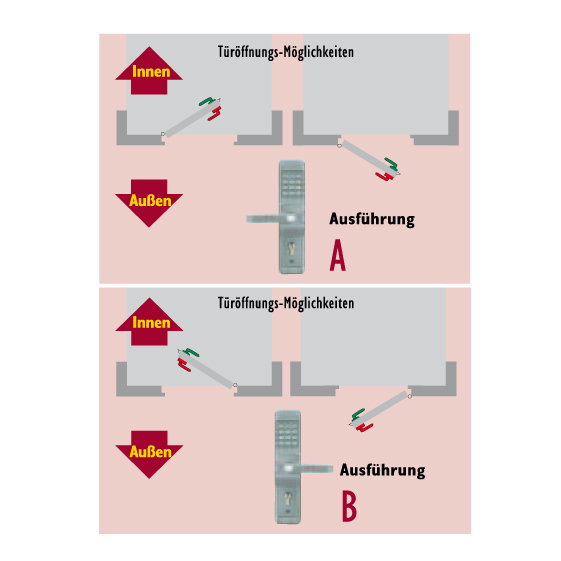 - Ausführung B für nach innen öffnende DIN links Türen.