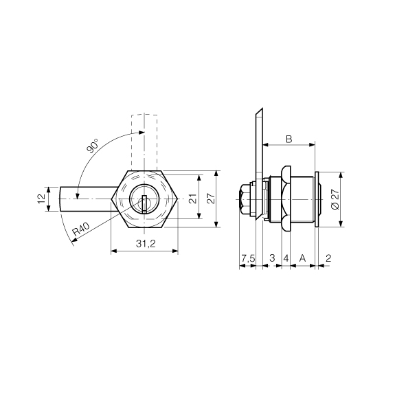 Schliessweg 90°: Schlüssel nur in geschlossener Stellung abziehbar,