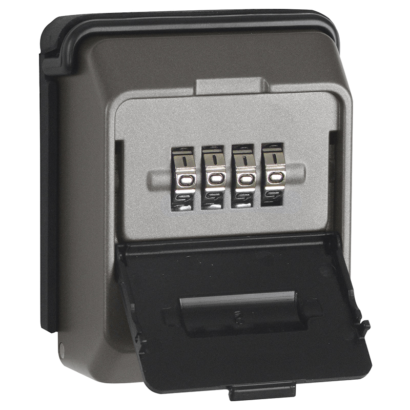 robustes Metallgehäuse dunkelgrau, Wetter- und Sichtschutz, Rückwand-Verankerungslöcher, 4-stelliges, verstellbares Zahlenschloss