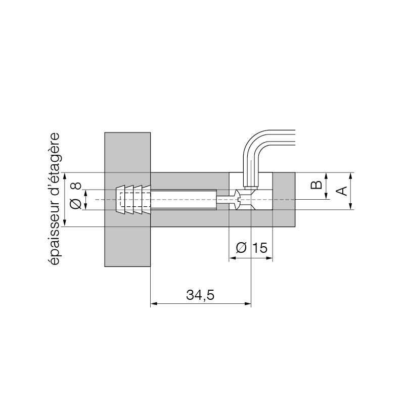 Fonte de zinc nickelée, pour étagères jusqu'à 16, 20 ou 23 mm,