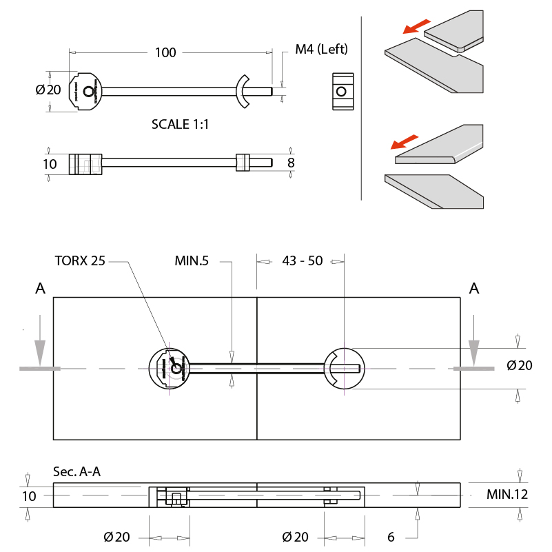 Acier galvanisé, pour les joints stables dans les plans de travail, avec une grande tolérance et une envergure énorme, avec pince courbée peut être utilisé comme épaisseur 12 mm, une boîte de vitesses angle intégré dans le boîtier moulé de la plaque permet un montage très simple et rapide