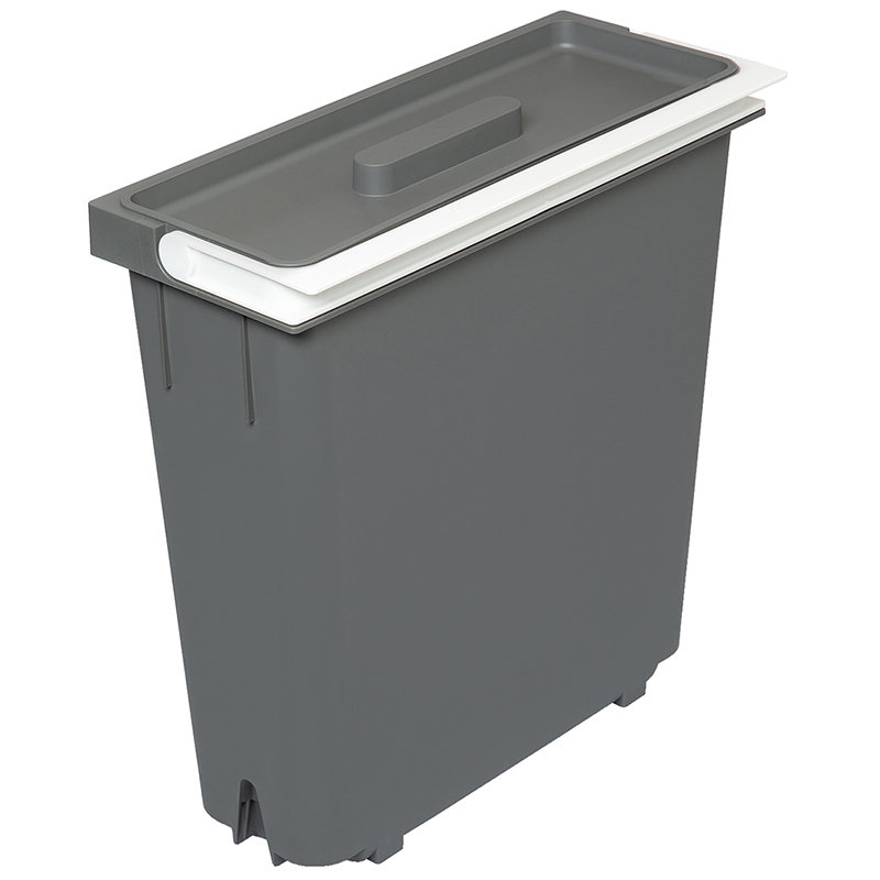 Plastique gris. Cette pièce de rechange est le récipient des modèles bas de la X-LINE de Müllex. Ce récipient de 11,5 litres avec couvercle assorti peut être utilisé pour collecter les matériaux à recycler et stocker les ustensiles de cuisine. Le conteneur s'intègre dans les ensembles X-LINE à partir d'une largeur de caisson de 550 mm. Récipient avec anse de support et couvercle.