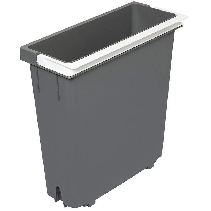 Plastique gris. Cette pièce de rechange est le récipient des modèles bas de la X-LINE de Müllex. Le récipient de 11,5 litres avec anse de support est fourni sans couvercle et s'intègre dans les ensembles collecteurs de déchets X-LINE pour les caissons à partir d'une largeur de 550 mm. Le récipient peut être utilisé pour la séparation, la collecte et le stockage de déchets à recycler et d'ustensiles de cuisine.