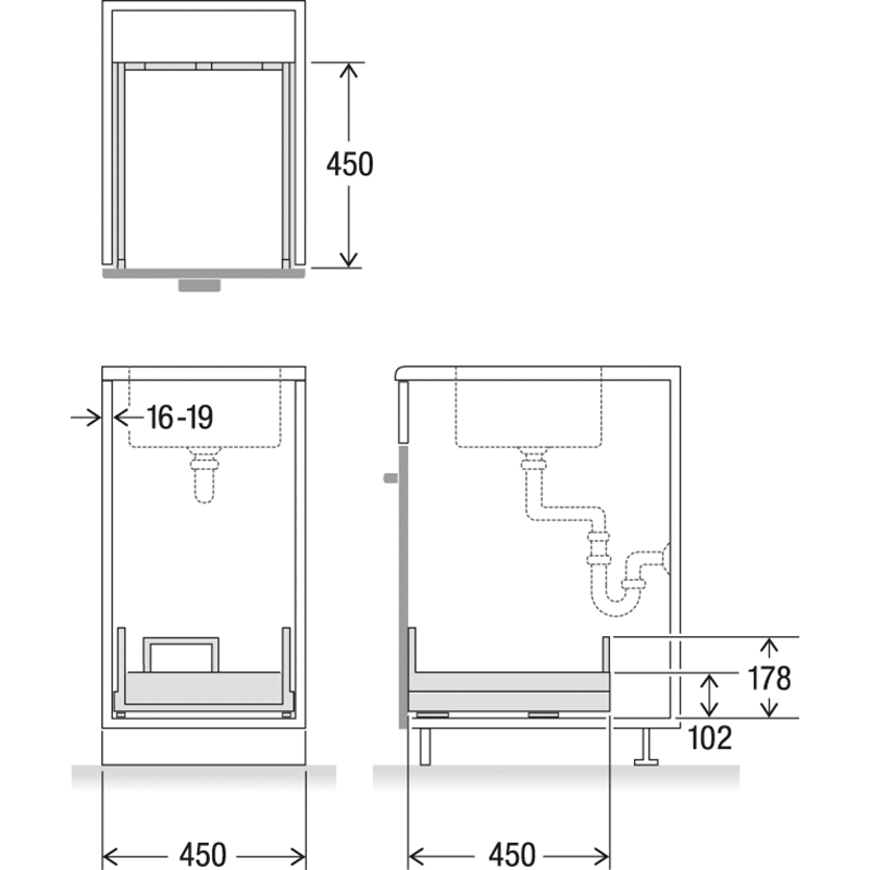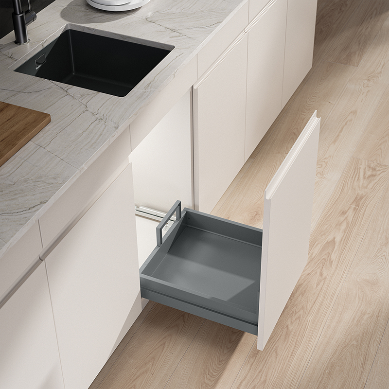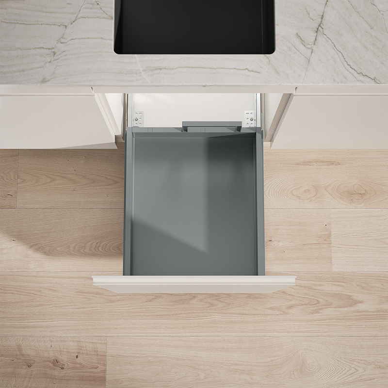 Le tiroir complet est conçu pour une largeur de caisson de 450 mm et offre une sortie et une entrée silencieuses et fiables du collecteur de déchets grâce à la technologie éprouvée de tiroir Grass, il est polyvalent, aussi bien pour l’équipement initial que pour les projets de rénovation, avec une capacité de charge allant jusqu’à 70 kg, le tiroir complet peut facilement accueillir même des charges lourdes, il convainc de plus par sa capacité de charge élevée et une excellente résistance à l’humidité, à la saleté et à la sollicitation quotidienne, la technologie de réglage 3D intégrée permet un alignement frontal précis au millimètre près