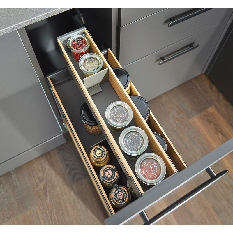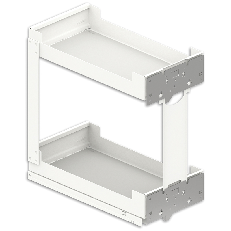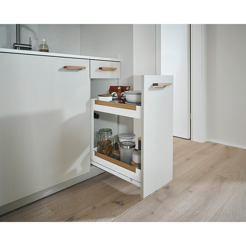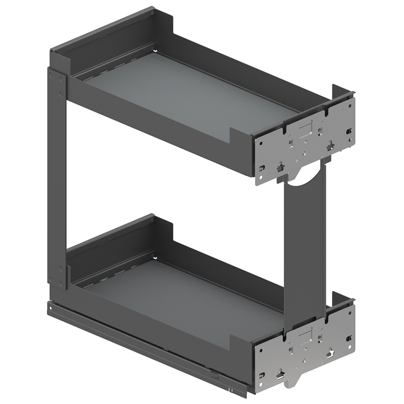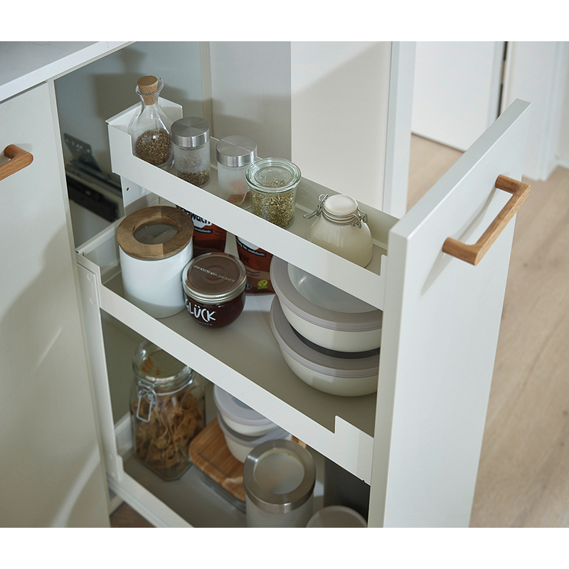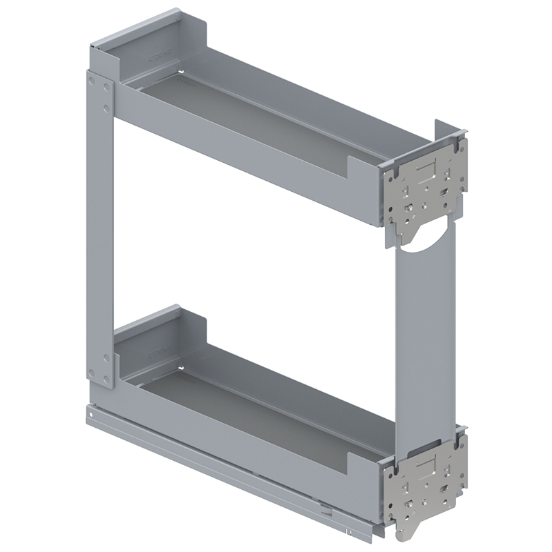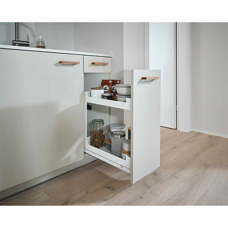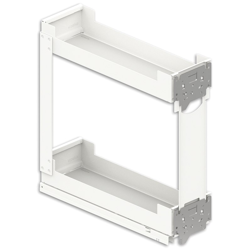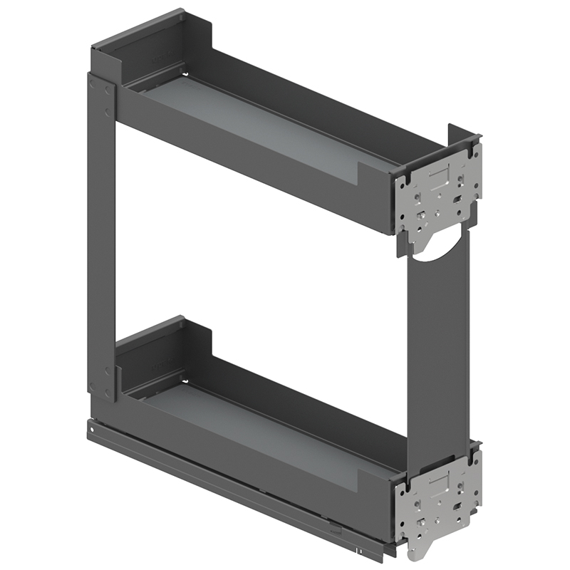 Tôle d'acier peinte par poudrage, coulisse à sortie totale, Softclose intégré, ouvrir l'extension frontale et accéder directement à la surface de rangement sur 2 - 4 étages, compatible avec les coulisses Grass Nova Pro, capacité de charge 0 - 30 kg, épaisseur de la paroi latérale 16 - 19 mm, sans rail de corps Nova Pro, sans jeu de rails, sans Push-to-open,