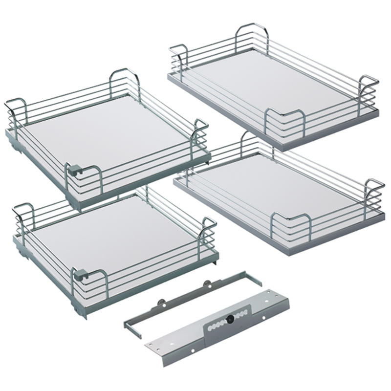 Tube en acier, fond en bois avec ferrure antidérapante, set comprenant 2 paniers pour cadre oscillant et 2 étagères pour cadre de panneau arrière, traverses et déflecteur de porte, chromé: tube chromé, fond blanc; argent: tube argent, fond gris