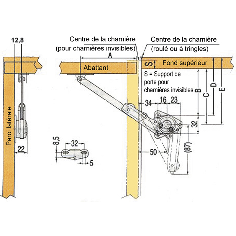 hauteur de l'abattant (cm) x 0,5 x poids (kg) = couple (km-cm/paire) - Empêche le claquement des abattants. Attention: ne jamais appuyer à la main sur l'abattant! Vous risquez alors de l'endommager.