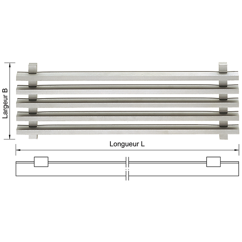 - Pour les grilles assemblées et prêtes à l'emploi, nous indiquer la longueur L et la largeur B. Le surcoût pour le travail de montage proprement dit est facturé sous le numéro correspondant 00.611.xx par pièce.
