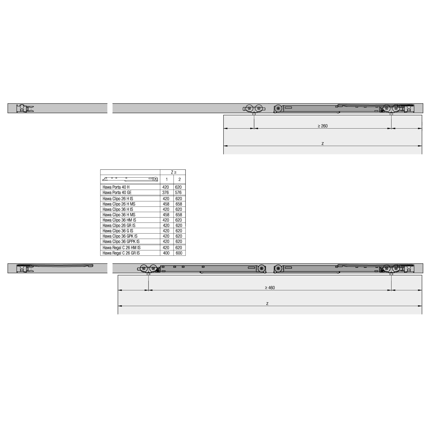 Ferrure de porte coulissante en bois HAWA Clipo 26 H Mixslide