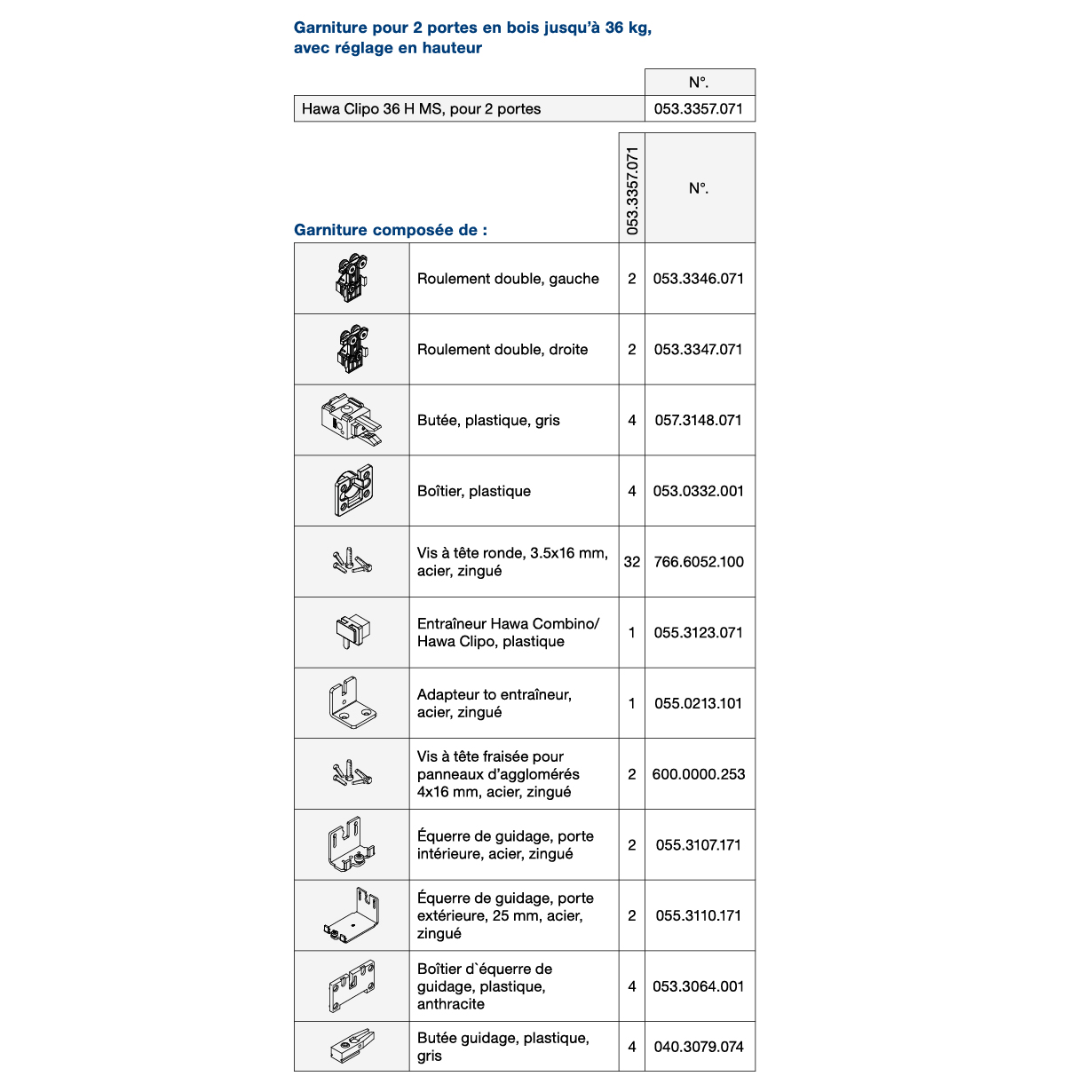 Ferrure de porte coulissante en bois HAWA Clipo 36 H Mixslide