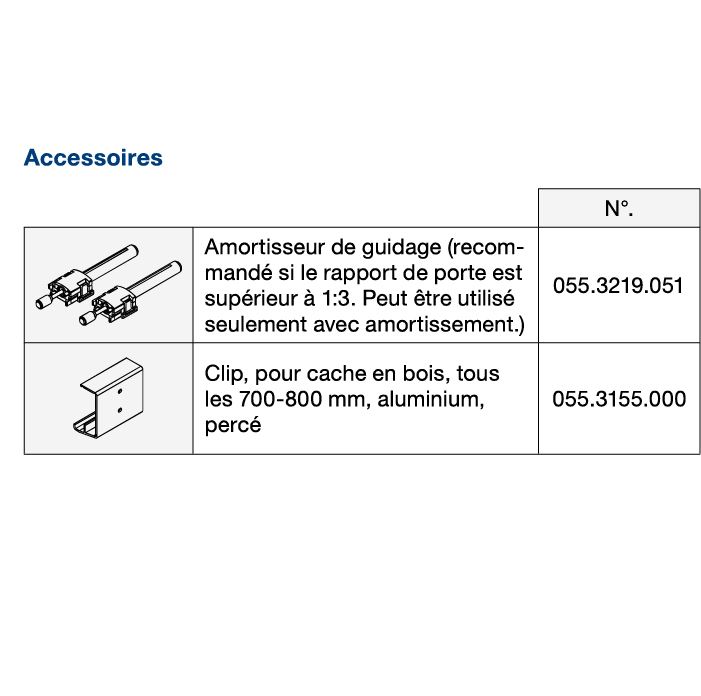 sans rails de roulement et de guidage, sans amortissement, sans accessoires
