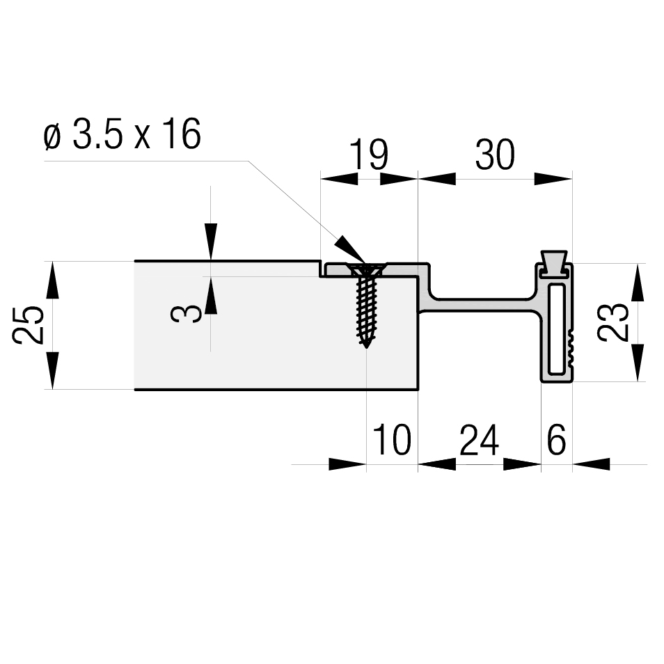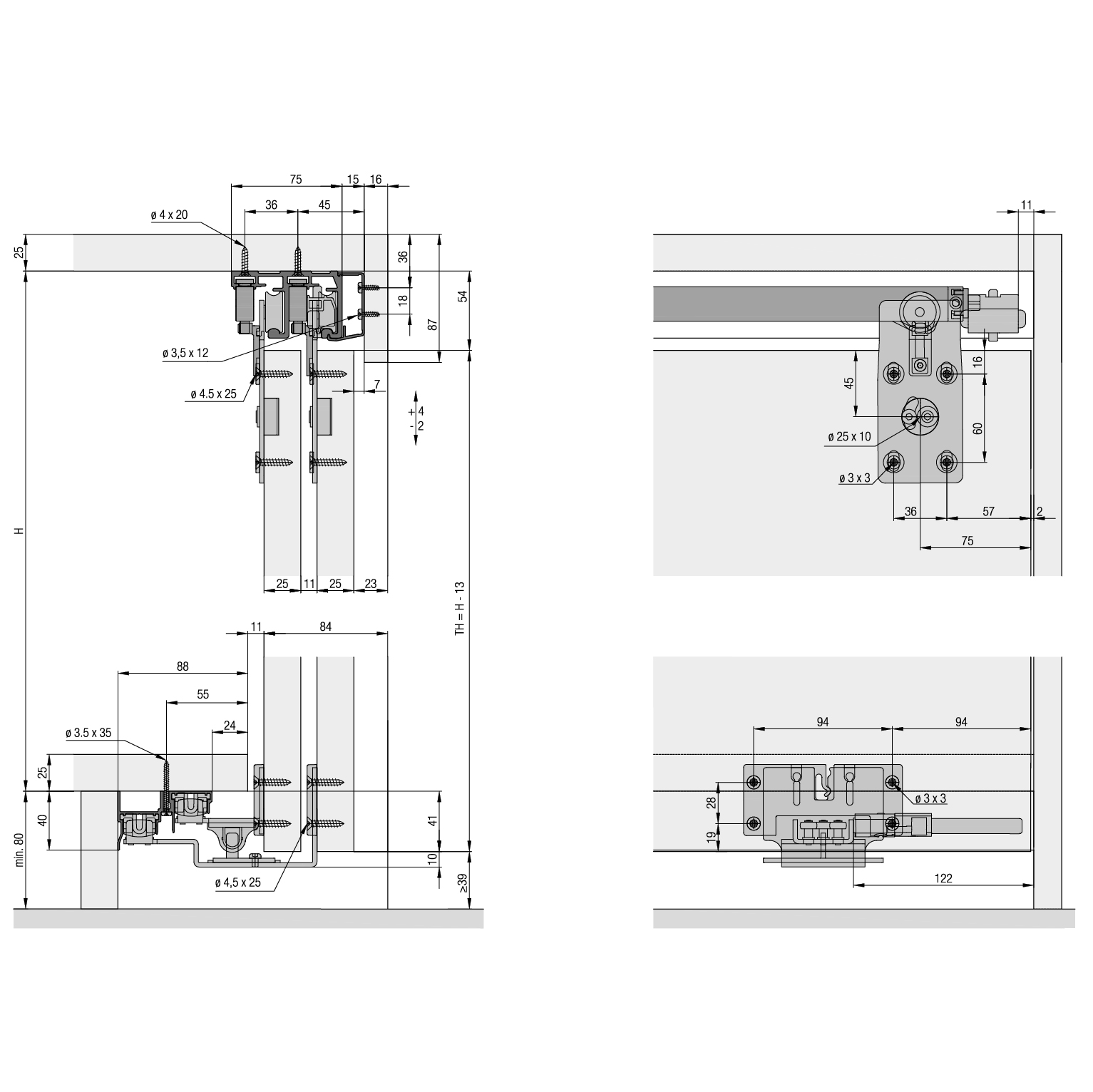 Pour portes d'armoire coulissantes en bois jusqu'à 65 kg, entrant dans le corps en haut et devant le corps en bas, épaisseur de porte 25 mm,