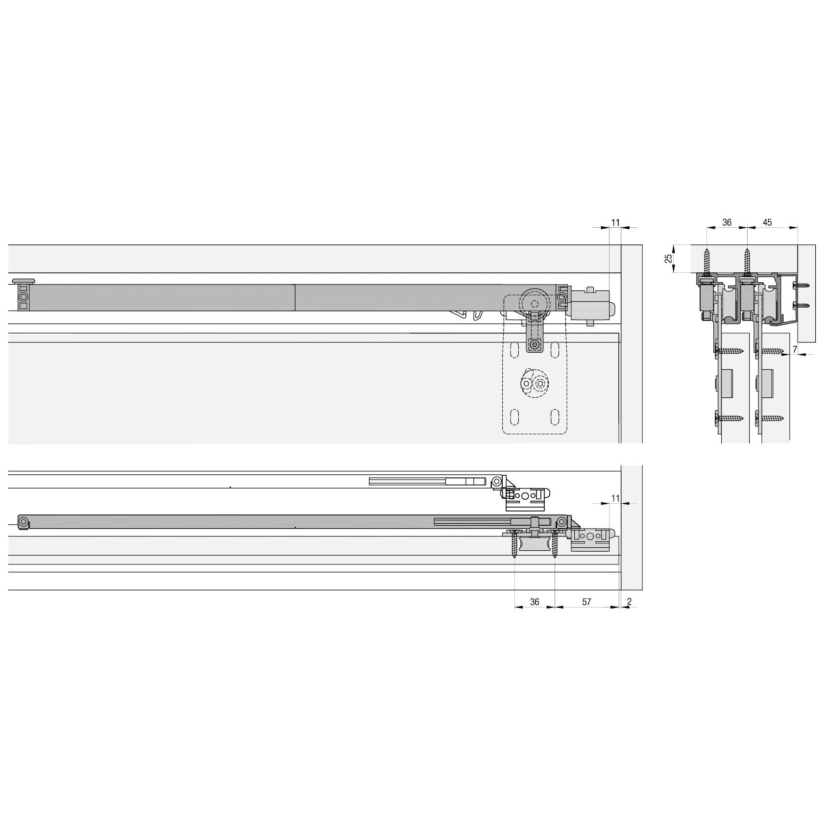 Ferrure de porte coulissante en bois, HAWA Combino 65 H Mixslide coulissant par le haut, pour tirage d'amortisseur