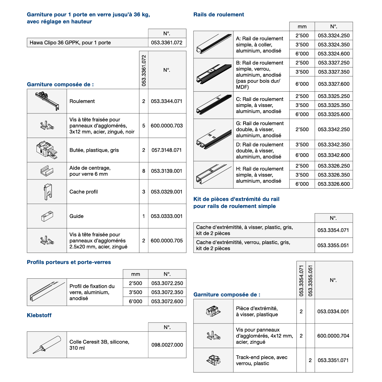Ferrure de porte coulissante en verre HAWA Clipo 36 GPPK Inslide