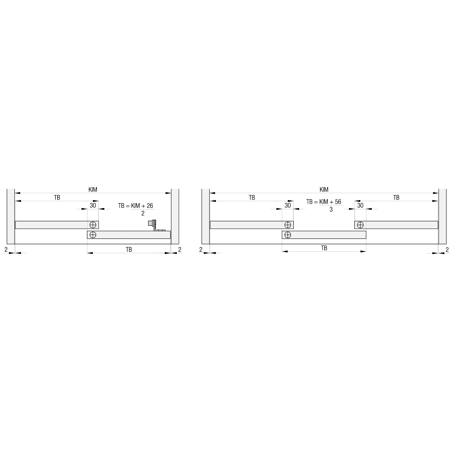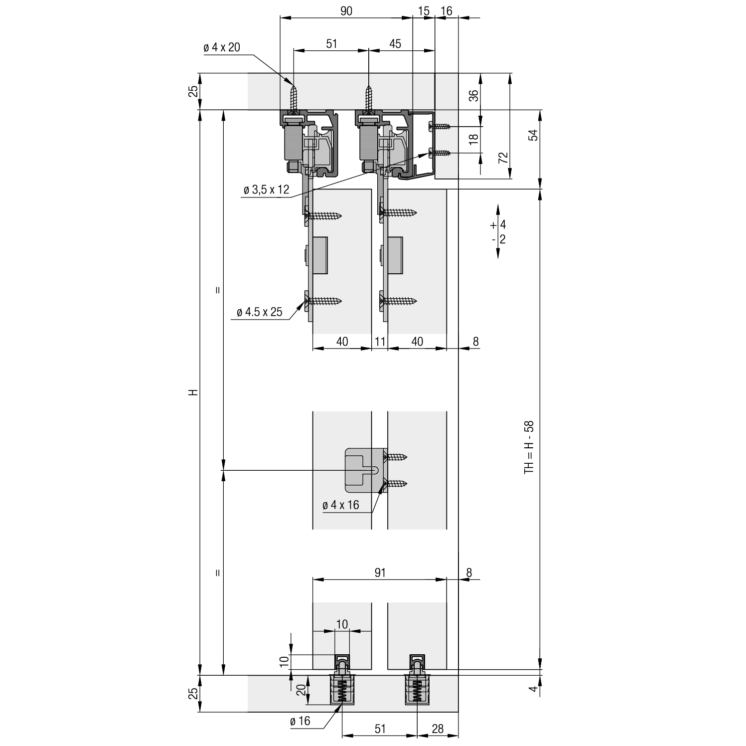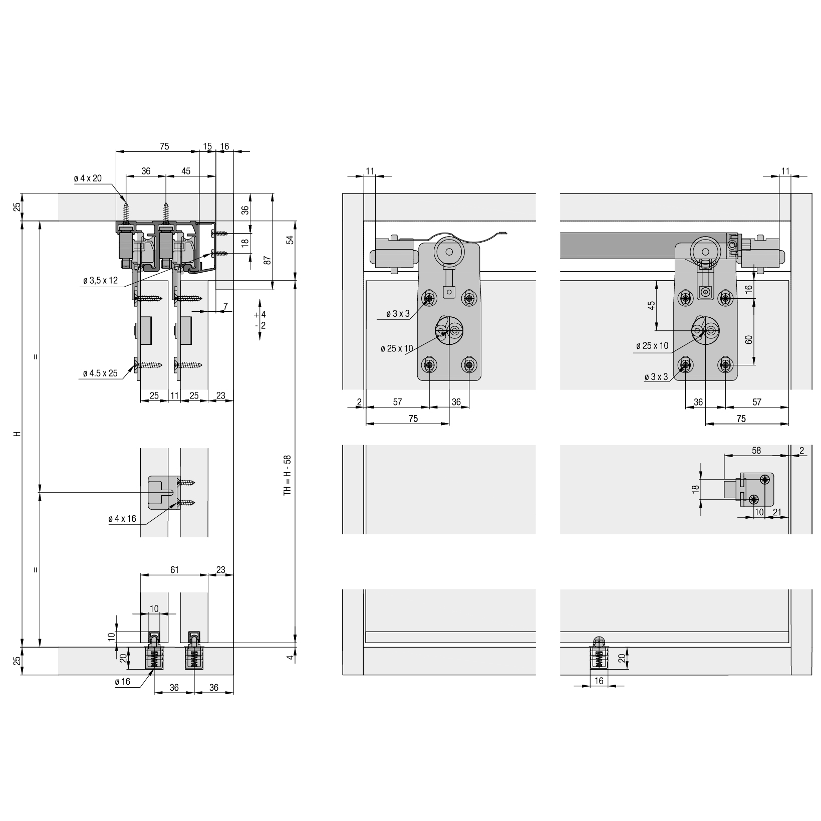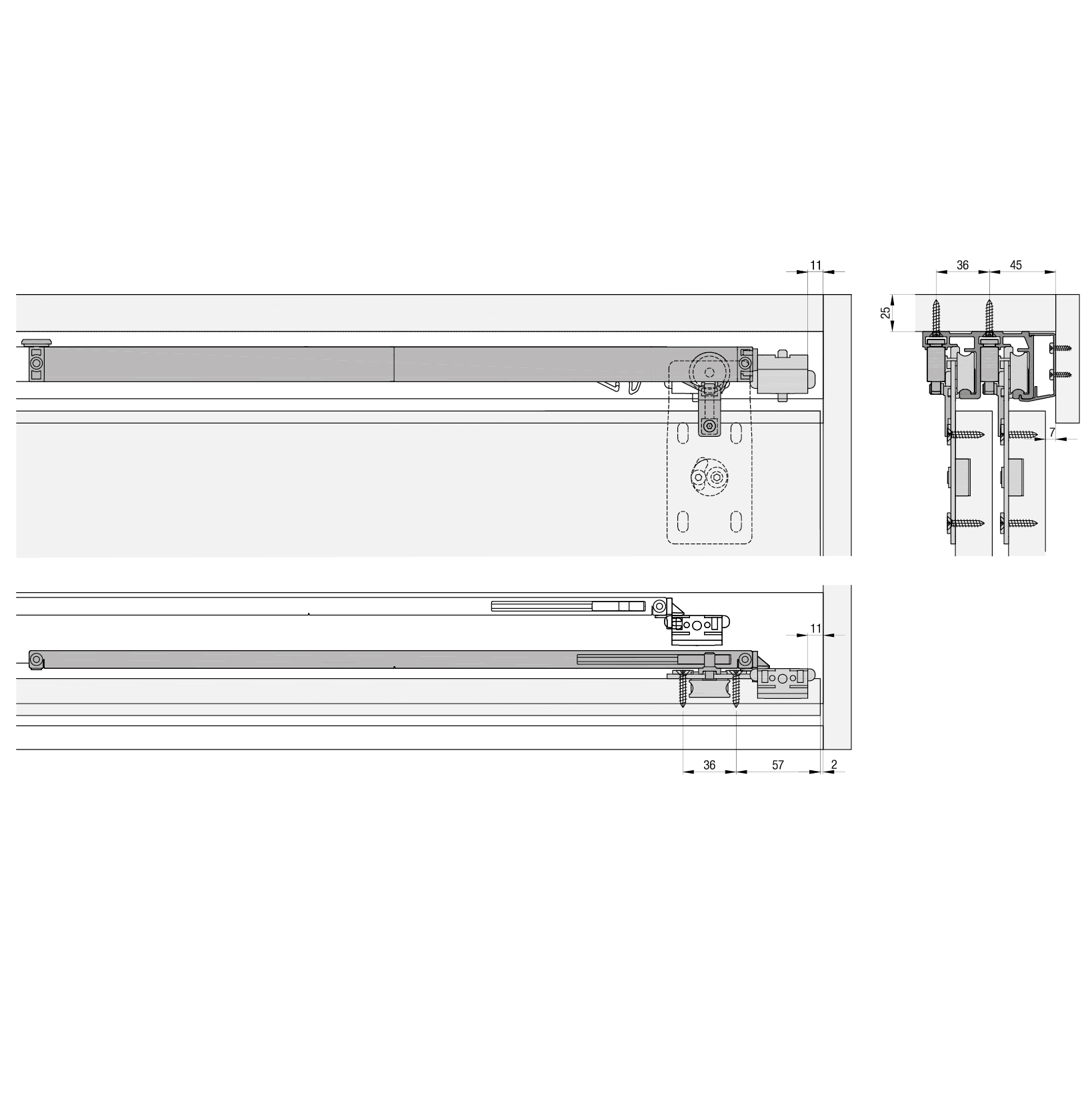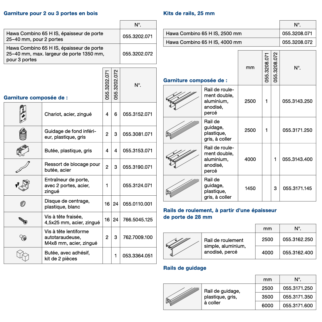 Ferrure de porte coulissante HAWA Combino 65 H Inslide, pour tirage d'amortisseur