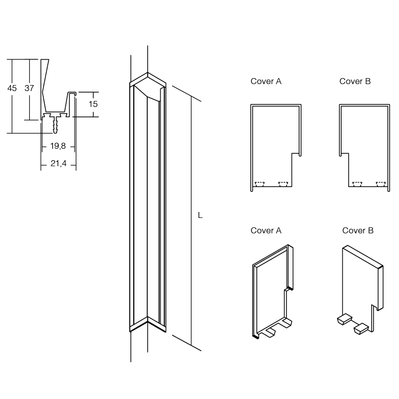 Aluminium matt schwarz, mattweiss, metallicgrau oder metallicbraun, ohne Endkappe