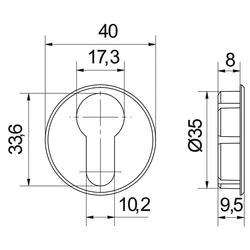 Rosace cylindrique PZ17 nickelée mate, adaptée à la serrure Espagnolett 3120