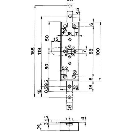 Serrure à tringle SCHÄNIS, avec fouillot 7 mm, sans languette, à visser