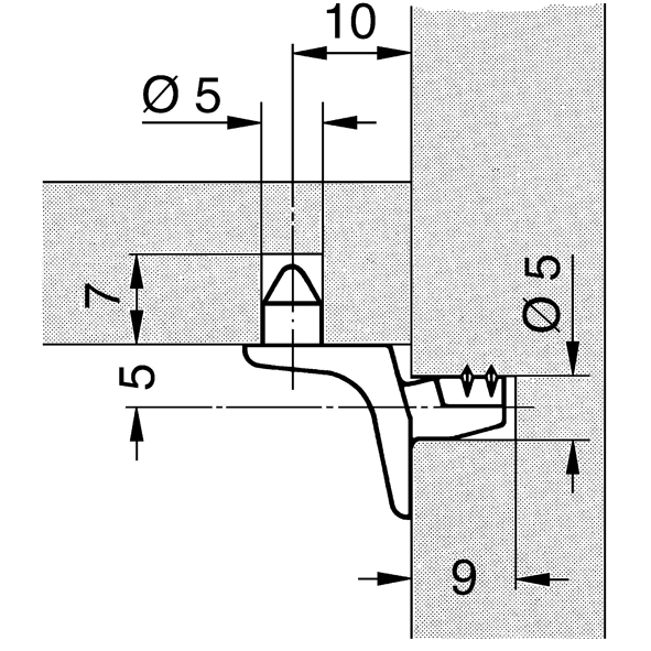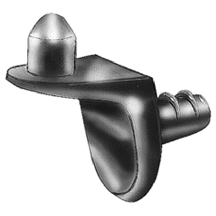 Fonte injectée nickelée, modèle lourd, avec tenon supplémentaire pour bloquer l'étagère, emplacement fixe dans les trous grâce aux nervures cunéiformes, à enfoncer directement dans les trous Ø 5 mm