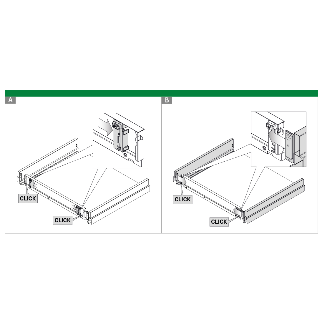 Clip de montage GRASS® de cloison arrière acier Nova Pro Scala, hauteur de châssis 90 + 186 mm