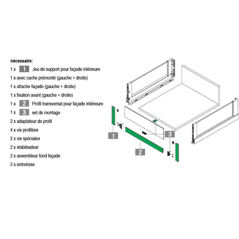 - Raccord de fond pour largeur du tiroir dès 600 mm 58.274.41 est recommandé.